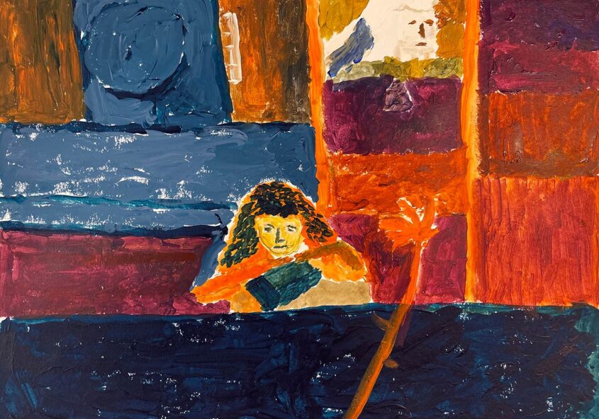Bram | Vrouw in kamer | Acrylverf op papier