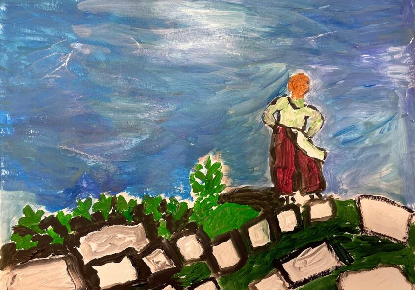Bram | Vrouw bij de kust | Acrylverf op papier