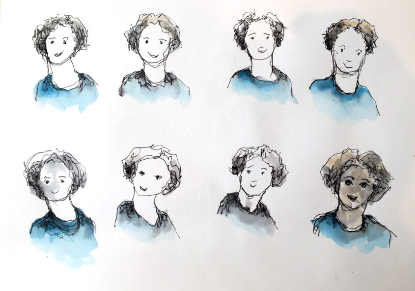 Anneke | Uit de serie ‘Koppen’ | Inkt en aquarelverf