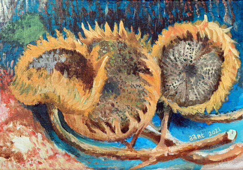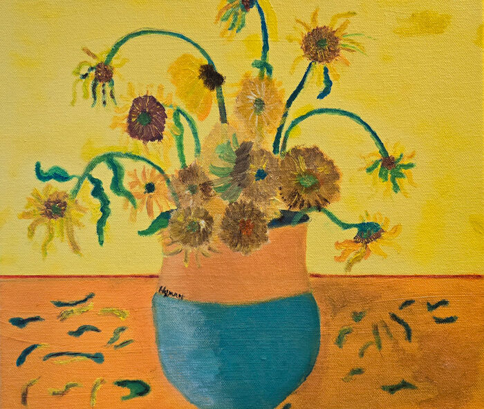 Errol | Droge Zonnebloemen in Vaas | Olieverf op doek
